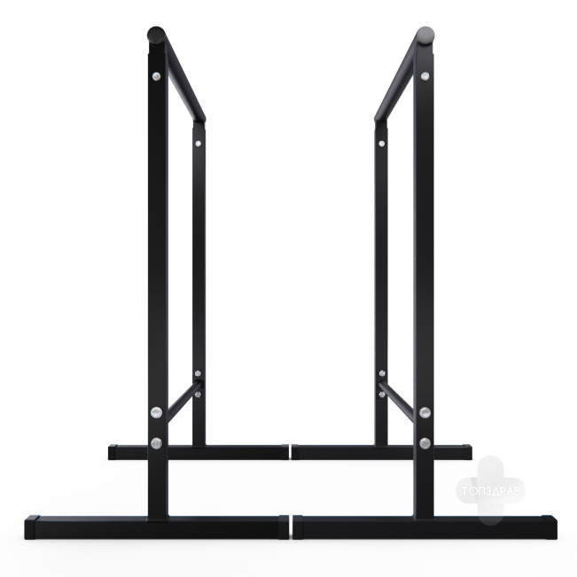 Брусья изготовлены из прочного стального профиля размером 40x40 мм и толщиной 2 мм, способного выдерживать нагрузки до 120 кг, что гарантирует их долговечность и надежность. Диаметр трубы перекладин 38 мм, а толщина металла 1,5 мм.